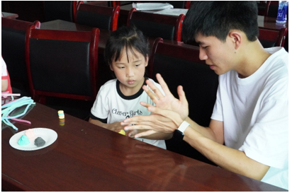 会后,志愿队开展了关爱留守儿童活动。同学们精心设计了趣味游戏和手工制作环节。社区孩子们用粘土、扭扭棒塑造出可爱的小物件,在纸盘上描绘五彩斑斓的梦想。活动现场欢声笑语不断,他们纯真的笑容让志愿者倍感温暖。